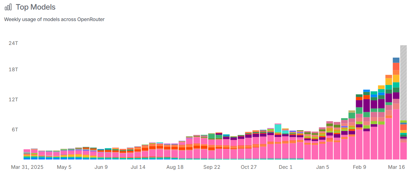 We can see on OpenRouter’s data that token consumption growth has strongly accelerated again as from January of this year:
