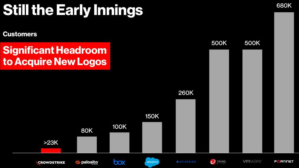 The company disclosed that they have penetrated 30% of logos within the Global 2000 in endpoint, highlighting their strong position already, with still massive opportunities in both the public sector and small businesses with penetration rates of less than 1%. Looking at the number of customers of other software companies, there is plenty of runway for growth: