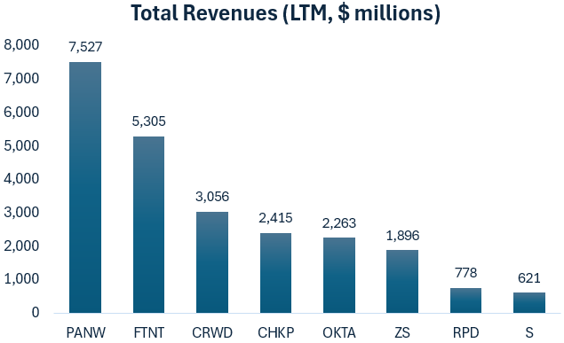 Looking at revenues of the listed players, CrowdStrike is one of the largest companies in the field: