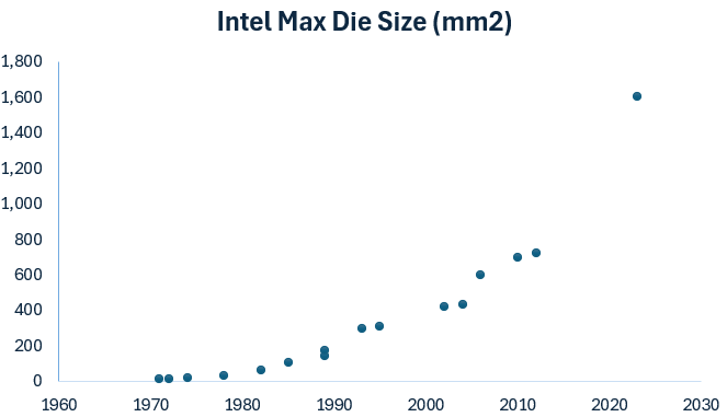 Besides increasing the size of a microchip’s die, the industry responded by simply packaging more dies within a single module to offer customers more performance. For example, AMD’s Genoa contains 96 cores across 12 chiplets (dies). Also the term chiplet is used when multiple dies are packaged together to form a single processing system.