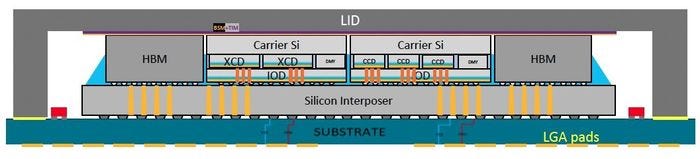 AMD’s flagship MI300 GPU goes one step further by also integrating dies vertically. In this case, CPU and GPU chiplets are stacked on top of input-output dies (IODs):