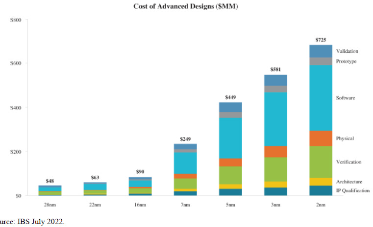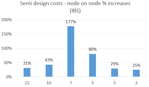Arm provides the following estimates for the rise in semi design costs on the leading nodes: