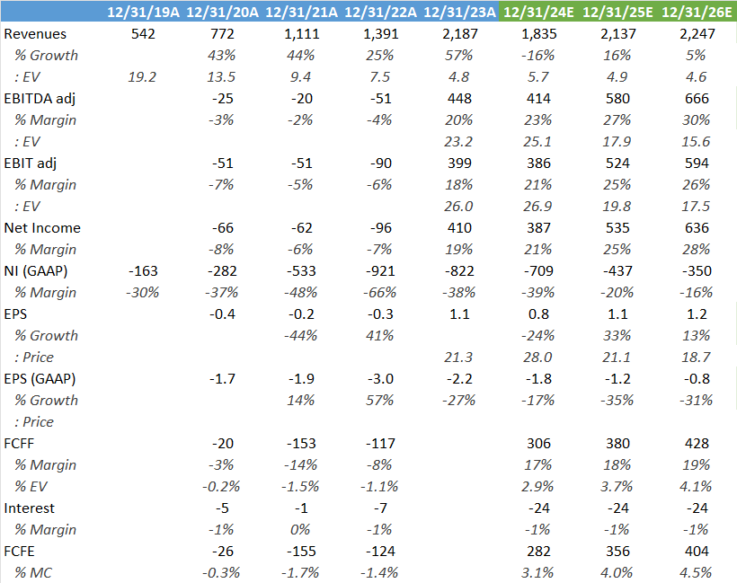 Under Whitehurst, the company divested some non-core businesses which weren’t making any money, after the acquisitive legacy of Riccitiello. So this year we get a reset in revenues although the impact on profitability will be limited. And as from 2025, top line growth should return. These are the sell side’s numbers: