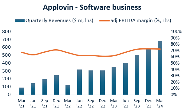 Unity is the dominant engine for mobile games development. Historically, despite its strong positioning, this business has been poorly monetized. We previously discussed how the company under new leadership is now moving to a new pricing model, which should unlock value for shareholders in the coming years. Typically, computer aided design (CAD) tools such as Unity are high margin business and trade at premium multiples, as investors like the sticky, recurring revenues with substantial pricing power. So over time there is strong potential for Unity to transition from being somewhat of an ugly duckling currently to a quality-growth asset.