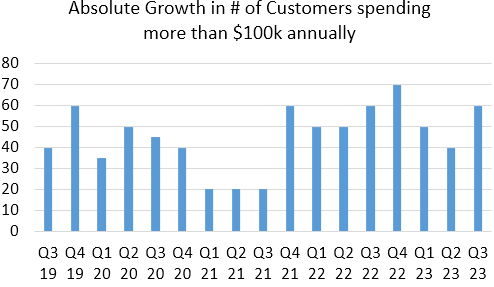 During the final quarter of last year, the company has started seeing macro headwinds, especially in the small-and-medium-sized business segment. The enterprise segment on the contrary, has remained very solid (chart below). And the large segment ditto continued to show strength.
