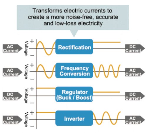 Japanese power semiconductor manufacturer Sanken illustrates how power semiconductors can change voltage levels to handle a variety of tasks: