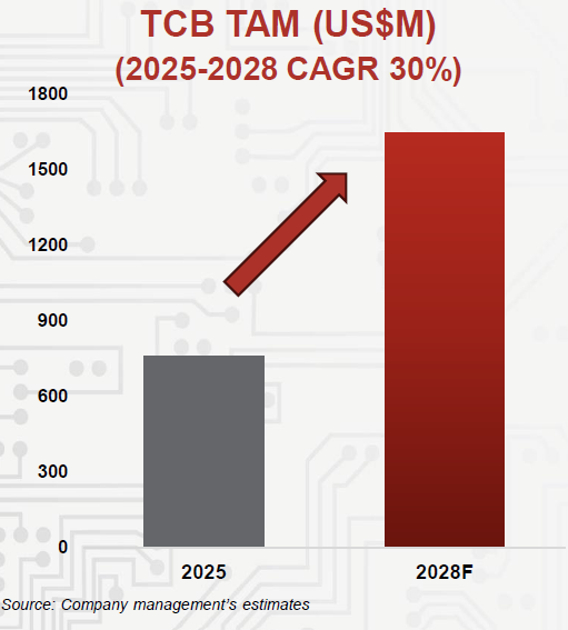 This time last year, we expected the TCB TAM to reach around USD 1 billion by 2027. Since then, the landscape has evolved meaningfully. The acceleration of AI-driven investment—especially in advanced logic and high-bandwidth memory—has expanded the market significantly more than our earlier assumptions. Based on our latest projections, we now estimate the TCB TAM to grow from roughly USD 759 million in 2025 to USD 1.6 billion by 2028, representing a CAGR of 30%. This reflects sustained adoption of 2.5D architectures, higher HBM stacks, and the industry’s move towards final pitch interconnect. These are all areas where TCB is increasingly the preferred solution.