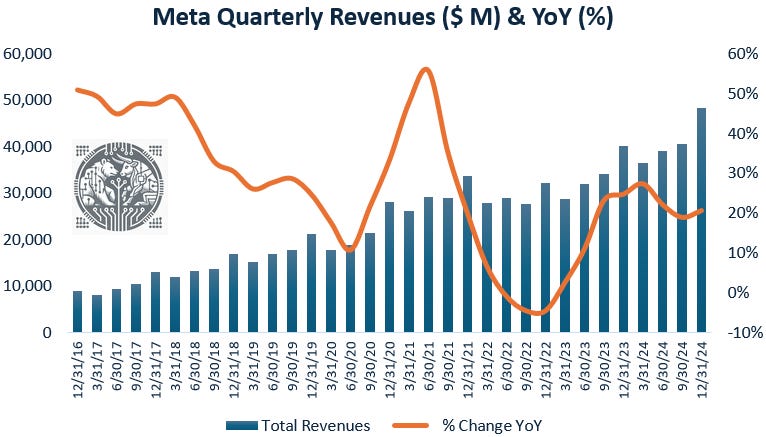 “We expect to bring online almost a gigawatt of capacity this year and we're currently building a 2-gigawatt and potentially bigger AI data center. We're planning to fund all of this by AI advances that increase revenue growth.” — Marc Zuckerberg, January ‘25
