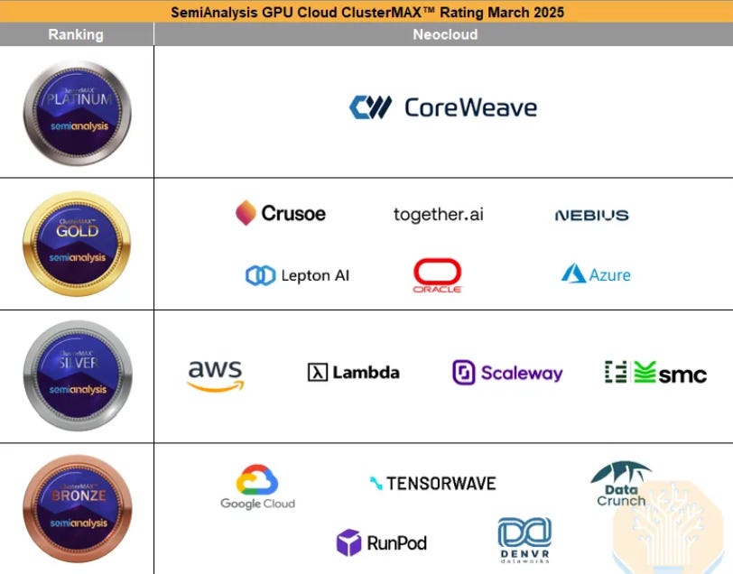When some investors look at the type of analysis like below, they conclude that – ‘The big three clouds are behind; CoreWeave, Nebius, Crusoe, etc. have the advantage, and as these neoclouds are growing revenues much faster and winning big contracts, the risk-reward is very attractive in these names’. More extreme viewpoints include that the big clouds will get disrupted by these neoclouds. However, SemiAnalysis is purely comparing GPU cluster performance here, and then a lot of investors mistake this as an assessment of overall cloud capabilities.