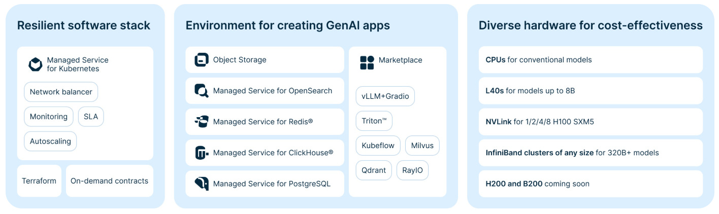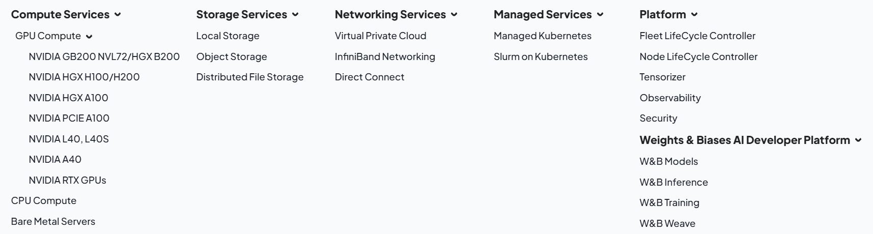 The only exception here we’ve seen amongst the neoclouds is Nebius. Nebius was born out of the Yandex cloud, and has a more comprehensive software stack available which normally would take a company years to develop (overview below).