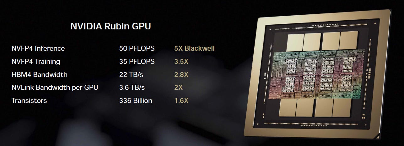 At CES, Jensen explained how Rubin will give 5x the performance of Blackwell, despite the number of transistors only increasing by 60%: