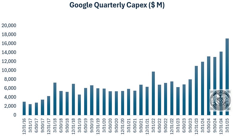 So it’s no surprise that the company keeps stepping up capex, as demand growth has been outstripping supply growth. The company is forecasting this year to invest around $19 billion in capex every quarter.