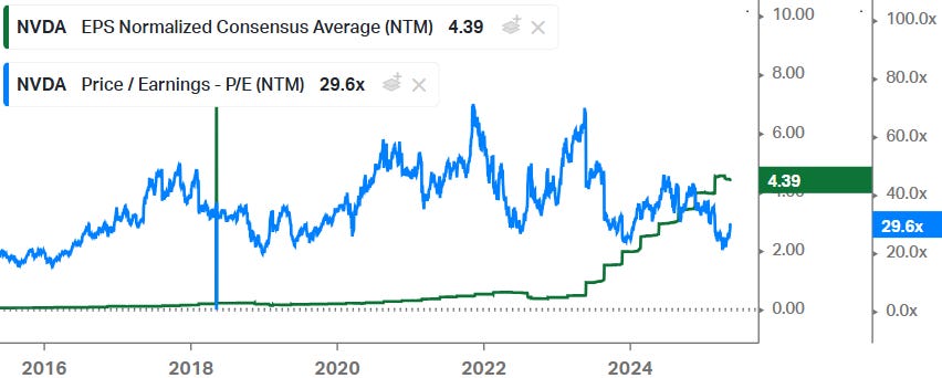 Note that half of all tokens processed over the last year were processed during the last month, which means that AI is exploding in the cloud. This all sounds promising for the hyperscalers and their suppliers, especially Nvidia where the market is currently assigning a bottom valuation multiple to its earnings, on the assumption that we’re about to peak in terms of AI spend. However, listening to both Google’s and Microsoft’s calls, this isn’t happening anytime soon.