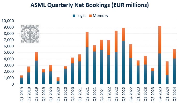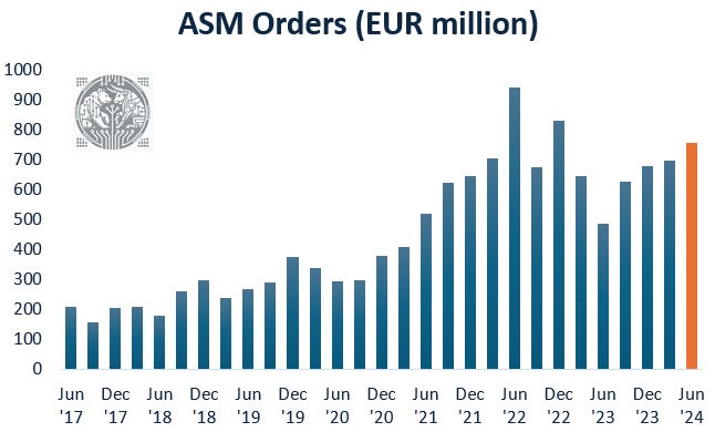 As manufacturing process steps and installed wafer capacity increase at 2nm, this has led ASML and other semicap players to be bullish on ‘25 shipments, bringing in a new growth cycle. Dutch cousin ASM International — which is more focused on atomic layer deposition and which will see higher insertion at the coming nodes — is seeing already a stronger momentum again, with quarterly orders coming in close to peak numbers generated over the covid semi boom: