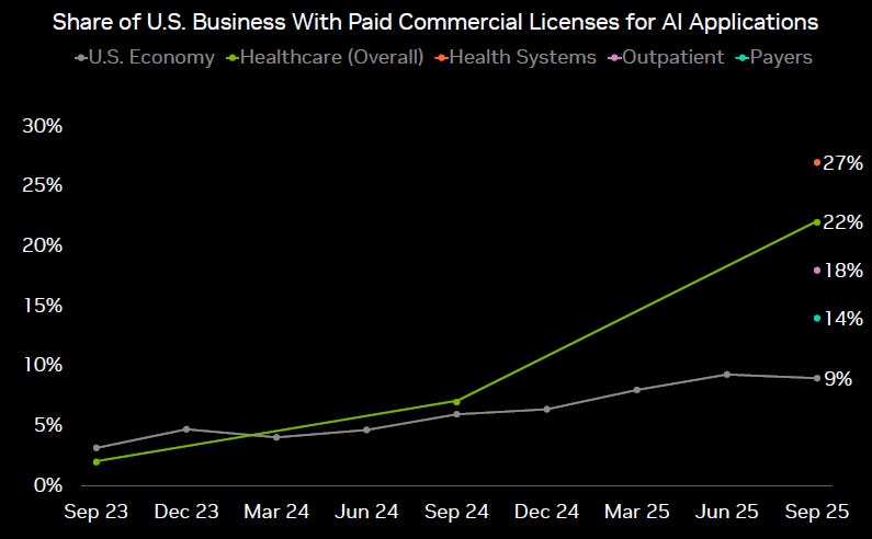 Nvidia mentioned at the JP Morgan conference that they’re seeing high AI spend in the health care sector overall, with AI usage growing at three times the rate of the overall economy. Again, this is a positive indicator for future innovation potential in this space.