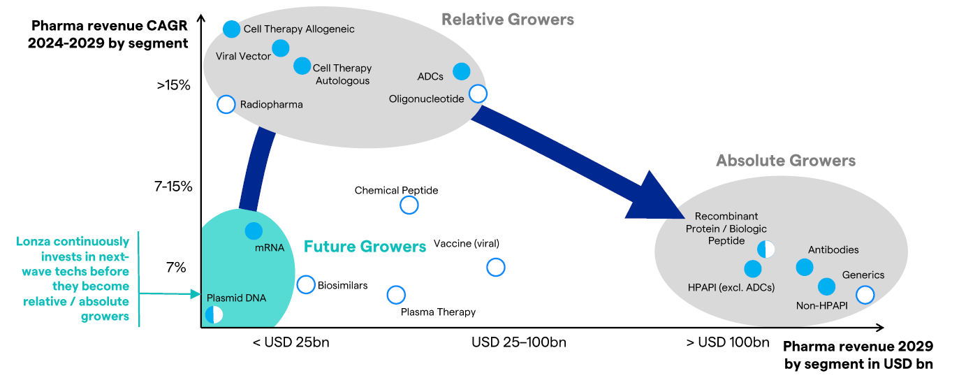 “First of all, the underlying pharma market itself is an attractive one, not very cyclical, growing at 6% to 7% a year in terms of value. Then there is the increase of outsourced manufacturing of pharmaceutical companies to partners like Lonza, which adds incremental growth of 1% to 2%. Lonza has active market selection where to invest, into which technologies and subsegments, adding another 1% to 2% of growth increment. This leads to a growth of 8% to 10% on average over time to the CDMO market addressable by Lonza. Then there’s the Lonza Engine, which adds to our capability and actually enables us to outgrow by another 2% to 3%. So, there is a growth potential of 10% to 13% for us available.