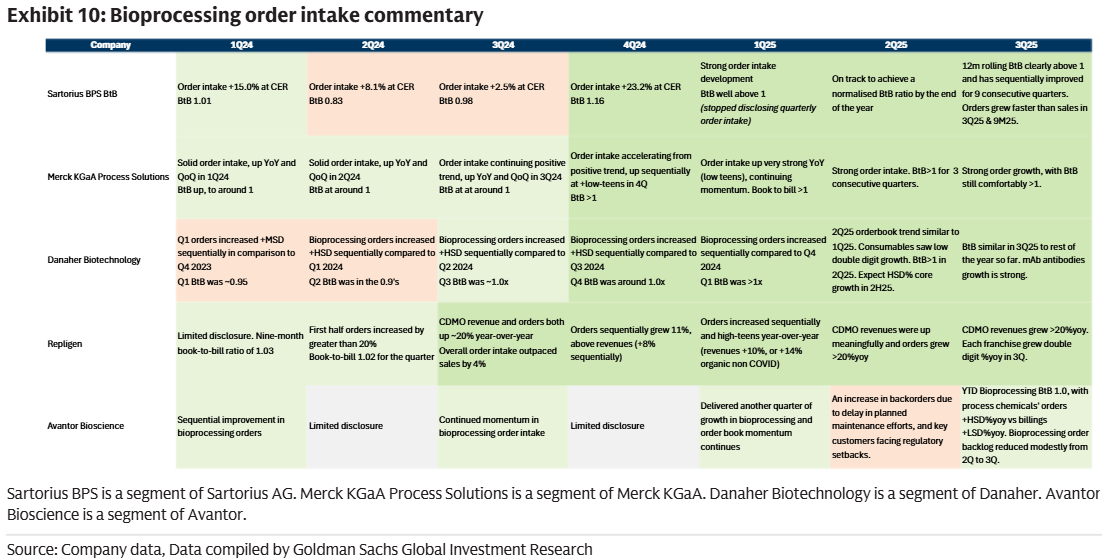 And this has already started to translate into improved order flow and book-to-bill ratios for the bioprocessing providers: