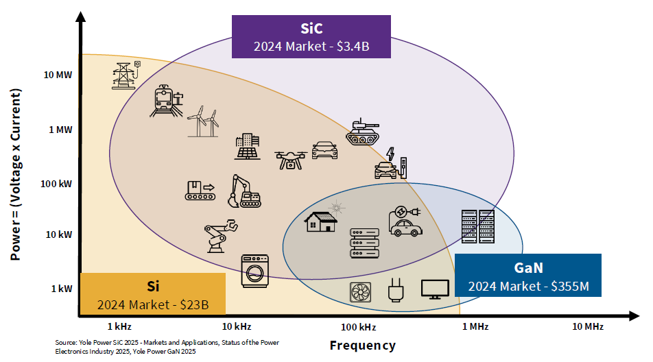 The reason is that SiC is better at handling high power, whereas GaN is better at high frequencies. Yole estimates the SiC market to grow at a 21% CAGR from 2026 to 2030, but GaN should grow faster as it will take the larger market share in the AI data center.