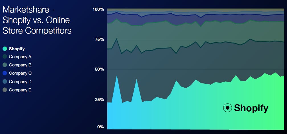 On Shopify’s provided market share data, the company is winning market share versus its competition in e-commerce SaaS: