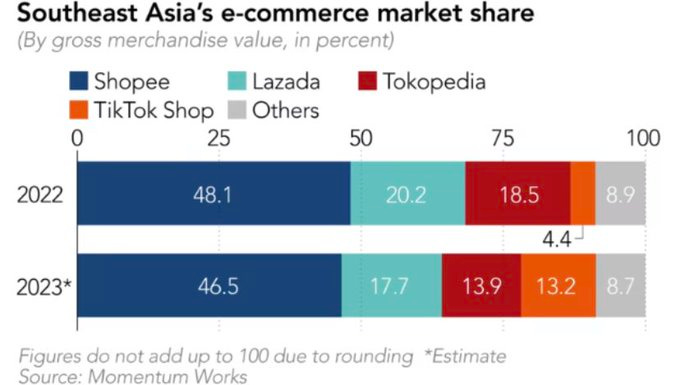 Competition is heating up in the e-commerce space. For example, in South-East Asia, there are number of strong players such as Shopee, Lazada and Tokopedia. Recently we also saw the introduction of TikTok in this market, taking rapidly a mid-teens market share. However, after Indonesian regulatory banning e-commerce over social media, TikTok has now decided to take a large stake in Tokopedia which should reduce competitive pressures, effectively moving back to a market with three large players.