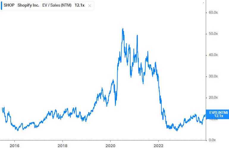 Obviously valuations got quite insane during the covid tech bubble, and even today, 12x forward Sales is high for a business only generating 50% gross margins and where growth is maturing.