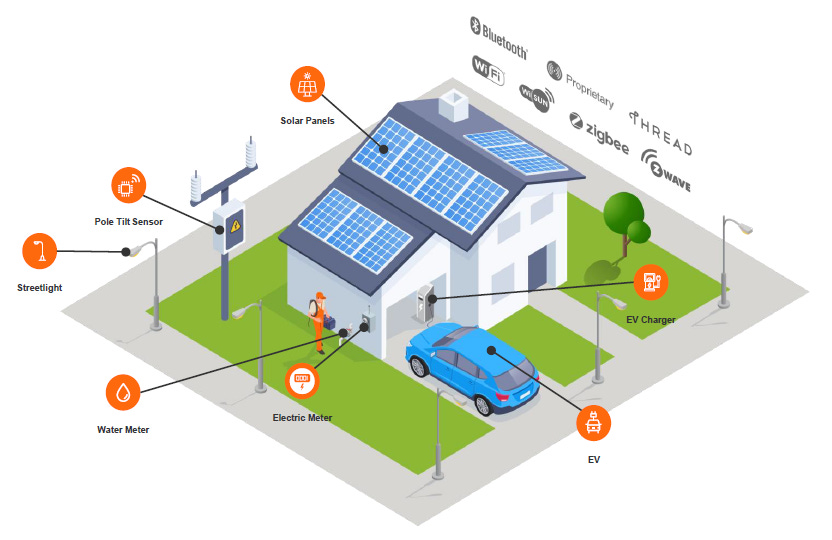 Silicon Labs (SiLabs) provides some typical examples of where these SoCs can be installed, from water and electric meters sending back data, to solar panels, street lighting and EV chargers. There are a wide variety of wireless technologies to connect these devices but the best known ones are Bluetooth for short range, WiFi for mid range and cellular for long range.