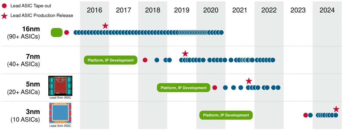 You can see that Broadcom has over 150 tape-outs at the foundries’ leading process technologies, including 10 tape-outs at the latest 3nm: