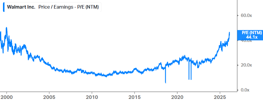 We think that the market has this completely wrong—Amazon should be trading on 45x and Walmart on 20x or so. Investors are now asked to pay an astronomic valuation for a company like Walmart with mediocre growth. Basically, the market is scrambling for safety in physical assets. Usually, when shares get absurdly expensive like this, subsequent returns are lackluster at best. Note that Walmart also traded on a value-multiple over the 2005-2015 period as the company ‘was going to get disrupted due to e-commerce’. Somewhat similar to the fears in many software names today.