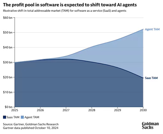Gartner makes a similar conclusion, with a likely shift towards agent monetization based on usage versus pure SaaS subscriptions: