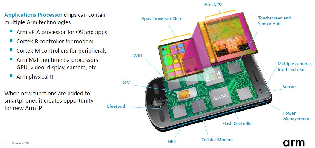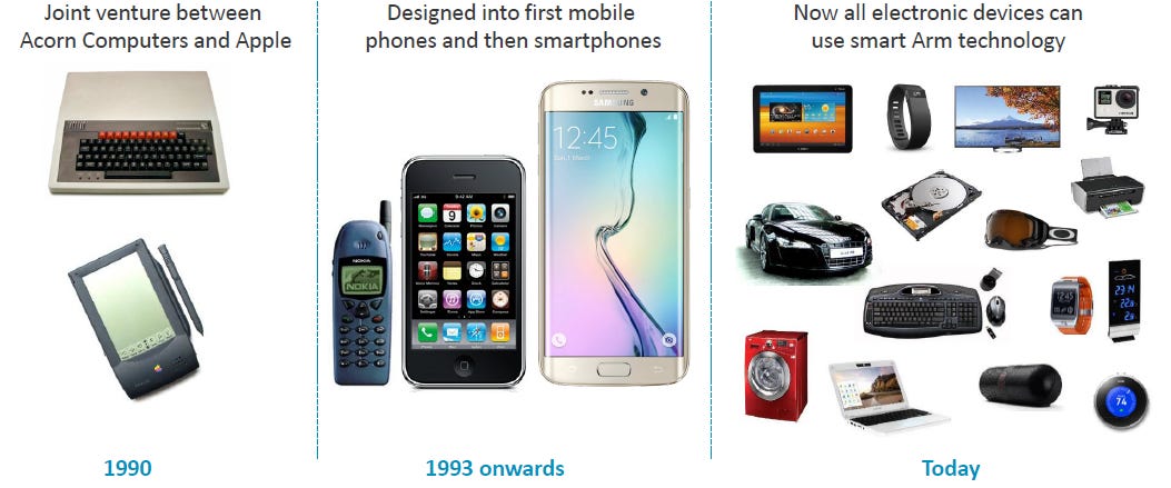 ARM was originally started as a joint-venture between UK based Acorn Computers and Apple. Its small, low power, and widely available designs made them the logical choice to form the basis for mobile chips. As phones became more powerful, increasing the need for more advanced chip circuitry, ARM shareholders started enjoying a revenue bonanza during the smartphone age. Subsequently its designs were introduced in ever more devices and chips, including lower value ones such as microcontrollers and embedded chips.