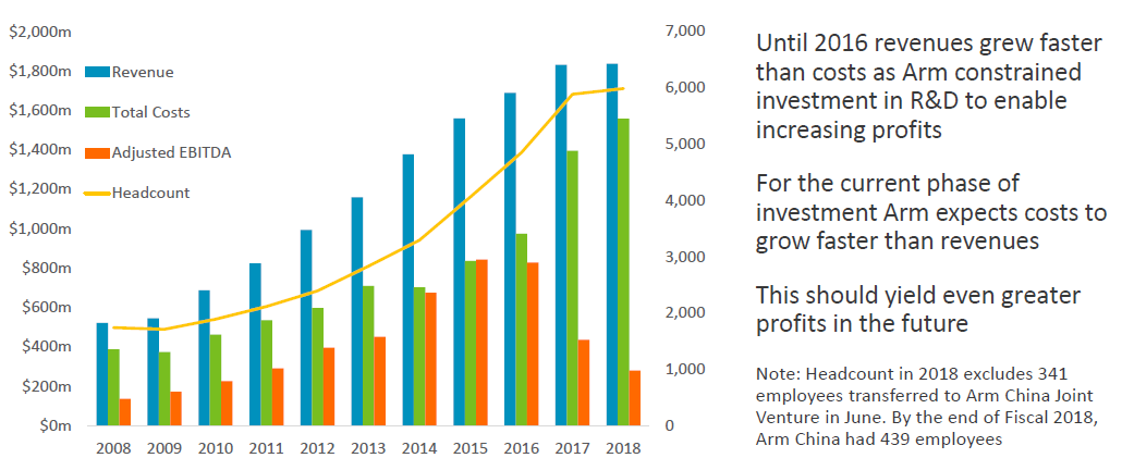That being said, the overall royalties CAGR is still attractive at around 12% over the 2018-2020 period. Overall ARM revenues however grew at only a 7% CAGR, indicating that the licensing business has been fairly stagnant.