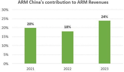 ARM’s Chinese offspring now operates completely independent from the mother company. In 2022, ARM’s equity interest was transferred into a subsidiary of SoftBank, Acetone, where ARM holds a 10% non-voting interest in and which in turn has a 48% stake in ARM China. So overall, ARM has a 4.8% indirect stake into the Chinese JV.