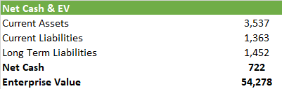 The company also has a net cash position of $722 million, leading to an enterprise value of around $54 billion:
