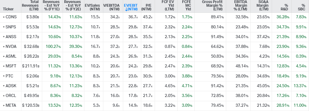 Quality tech companies trade at around 15 to 35x EBIT, although most of these are generating better top line growth rates than ARM: