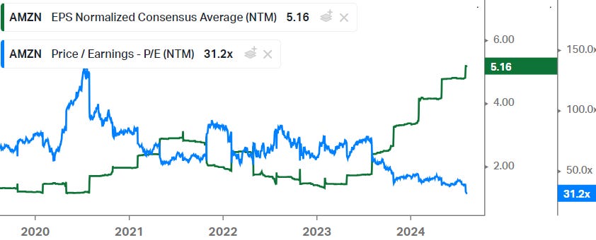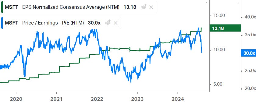 So now the multiple for both Microsoft and Amazon has come back to a more reasonable 30x, it’s still not cheap, but at these levels and if the shares go further south, I’d be happy to add to quality names like these as you should get double digit top line growth combined with operating leverage over time.