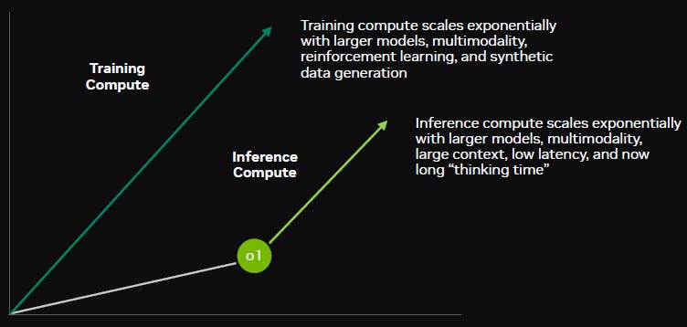 And even more encouraging is that a second scaling law has emerged, this time in inference. The scaling law here is that a larger model that reasons for larger amounts of time tends to comes up with better solutions. And actually, DeepSeek’s breakthroughs with its R1 DeepThink model will benefit the second scaling law. Now that LLMs can develop chain-of-thought reasoning capabilities with unsupervised reinforcement learning, this will result in both more models and much more impressive models with inference-time capabilities. Anecdotally, we never used OpenAI’s o1 as it felt slow and boring, while DeepSeek’s R1 felt much faster and interesting as it displayed how the model was reasoning. So when it comes to the second scaling law, DeepSeek should strongly drive compute demand here.