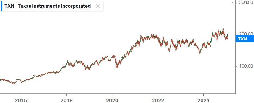 And this limited downside in the share price over the 2023 - 2024 semi contraction. So despite the cyclical nature of TI’s business, the shares held up much better.