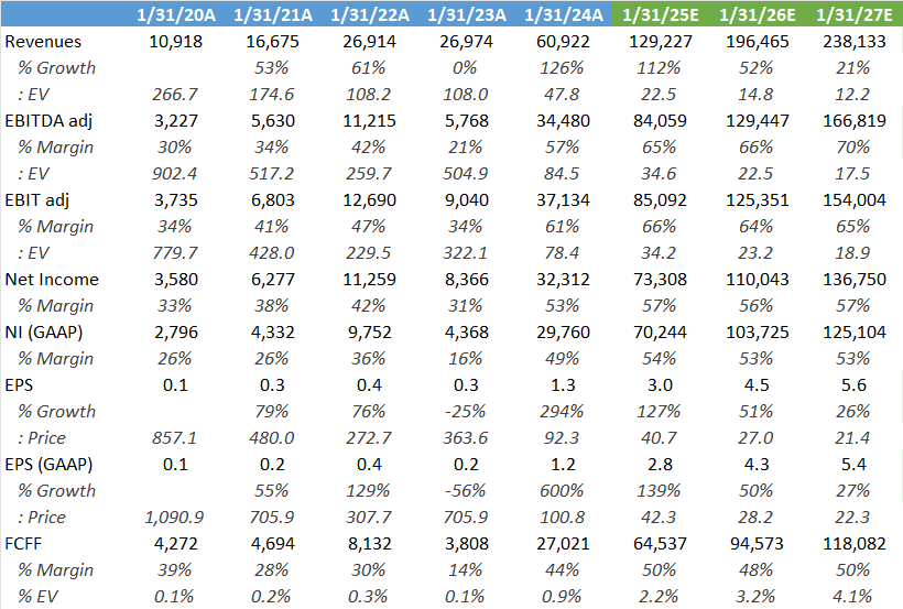 Nvidia continues to have a long term attractive outlook. The long term CAGR in AI demand should be steep due to the breadth of applications where AI can be applied, the huge sizes of some of these markets, and scaling laws. Nvidia is a stock which has really been climbing a wall of worries over the last few years. Ever since the AI boom started and Nvidia gave its first huge growth outlook in May of ‘23, many were already screaming bubble. Since this share price pop, the shares have tripled again even taking into account the sell off of last week.